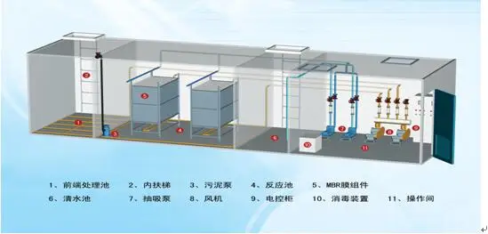 WSZ——AO系列污水處理設備除采用了常規的鼓風機消音措施外(如隔震墊、消音器等),還在鼓風機房內壁設置了新型的吸引材料,使設備運行時的噪音低于50分貝,減輕了對周圍環境的影響。